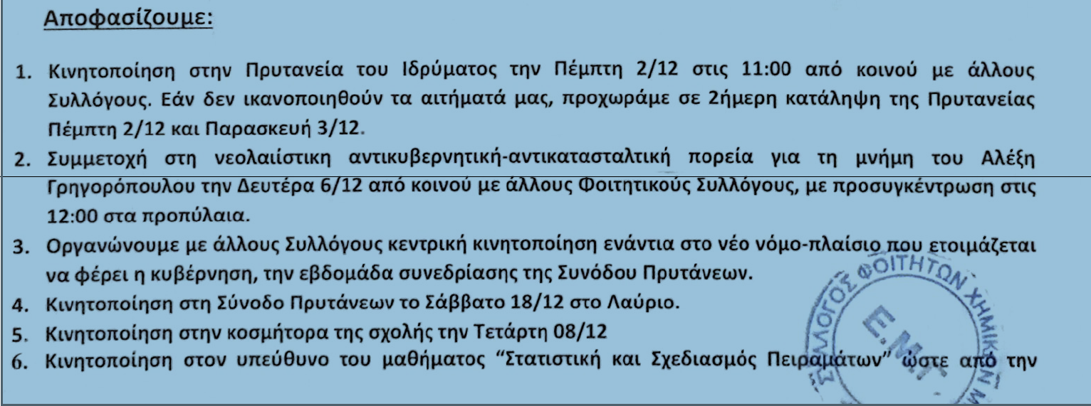 Re: Συνελευση ΦΣ 1/12/21 Η αλήθεια είναι πως υπάρχει μια γενική απορία για το αν θα είναι ανοιχτά, γιατί στην απόφαση δεν αναφέρει κατάληψη ή κλειστή σχολή., λέει απλά συμμετοχή στη πορεία. Οπότε δεν ξέρω αν θα είναι κλειστά ή απλά θα απέχουν όσοι αποφασίσουν να πάνε στην πορεία. Αν γνωρίζει κάποιος κάτι παραπάνω ασ μας ενη... Δ. Συζήτηση: Η καθημερινότητα της σχολής Θέμα: Συνελευση ΦΣ 1/12/21 Απαντήσεις: 4 Προβολές: 43230 Παρ 03 Δεκ 2021, 1:19 pm Μετάβαση στη δημοσίευση