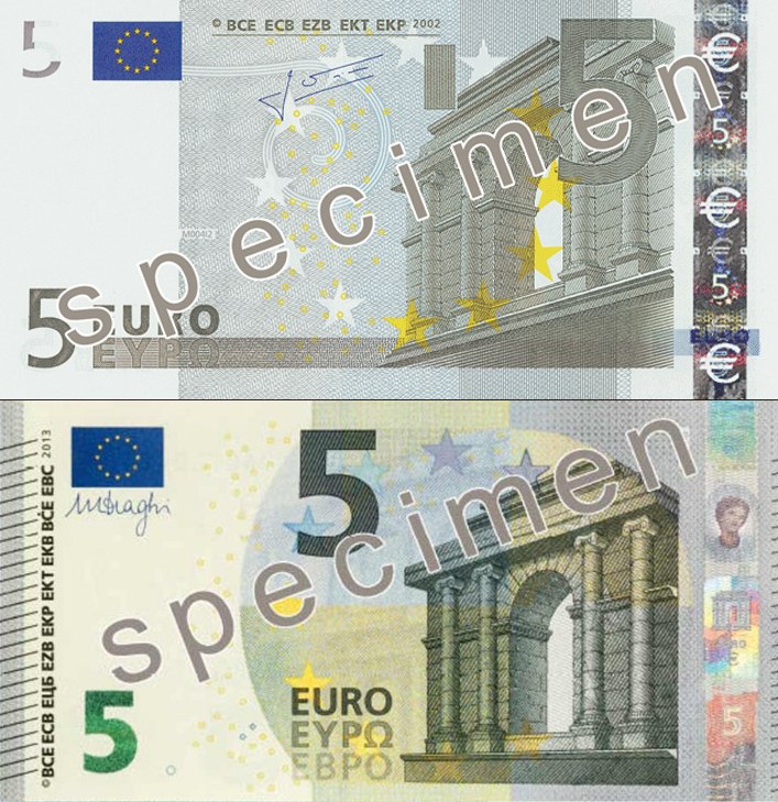 Νεα χαρτονομισματα του Ευρω 1 από PeriklisP Δεν είναι ακριβώς Breaking News για να το ποσταρουμε και πρωτοσέλιδο, αλλά here it goes: 11 χρόνια μετά την πρώτη φορά που τα πιάσαμε στα χέρια, τα χαρτονομίσματα του ευρώ αλλάζουν! Σήμερα αποκαλύφθηκε το σχέδιο για το νέο 5ευρω. Η ιδέα πίσω από το σχέδιο θα είναι παρόμοια, με την μια πλευρά να φέρει κάποιο σημείο σταθμό της ευρωπαϊκής αρχιτεκτονικής και την άλλη τον χάρτη της Ευρώπης και μια γέφυρα της αντίστοιχης περιόδου. Τα νέα χαρτονομίσματα θα διατηρήσουν τον χαρακτηριστικό χρωματισμό τους, αλλά θα φέρουν πιο έντονα τα σχεδία και τα χρώματα καθώς θα έχουν και βελτιωμένες προδιαγραφές ασφαλείας. Επίσης, έχουν γίνει ενημερώσεις στον χάρτη της Ευρώπης για να φαίνονται τα νέα κράτη-μελη και πλέον η επιγραφή ΕΥΡΩ θα γράφεται πέρα απο την λατινική(EURO) και την ελληνική(ΕΥΡΩ) γραφή και με κυριλλική(ΕΒΡΟ) για να καλύπτεται και η Bουλγαρια ως κράτος μέλος. Ακολουθήστε τα αποκαλυπτήρια εδω In the beginning the Universe was created. This has made a lot of people very angry and has been widely regarded as a bad move. -The Hitchhiker's Guide to the galaxy ΠαράθεσηΠέμ 10 Ιαν 2013, 10:38 pm