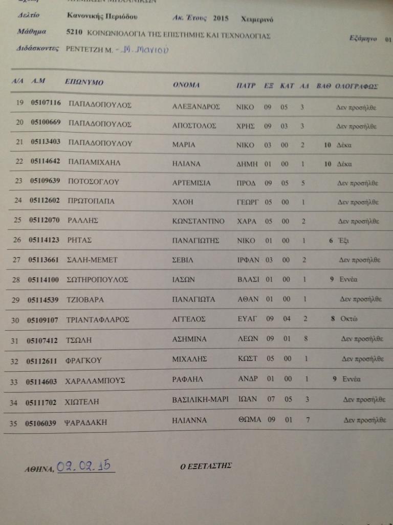 [1ο] Κοινωνιολογία της Επιστήμης και Τεχνολογίας (επιλογής) 70 από evchan Τα αποτελέσματα υπάρχουν και στο κτήριο της ΣΕΜΦΕ, σε περίπτωση που δεν είναι ευδιάκριτα! Συνημμένα ΠαράθεσηΤρί 10 Μαρ 2015, 1:18 pm