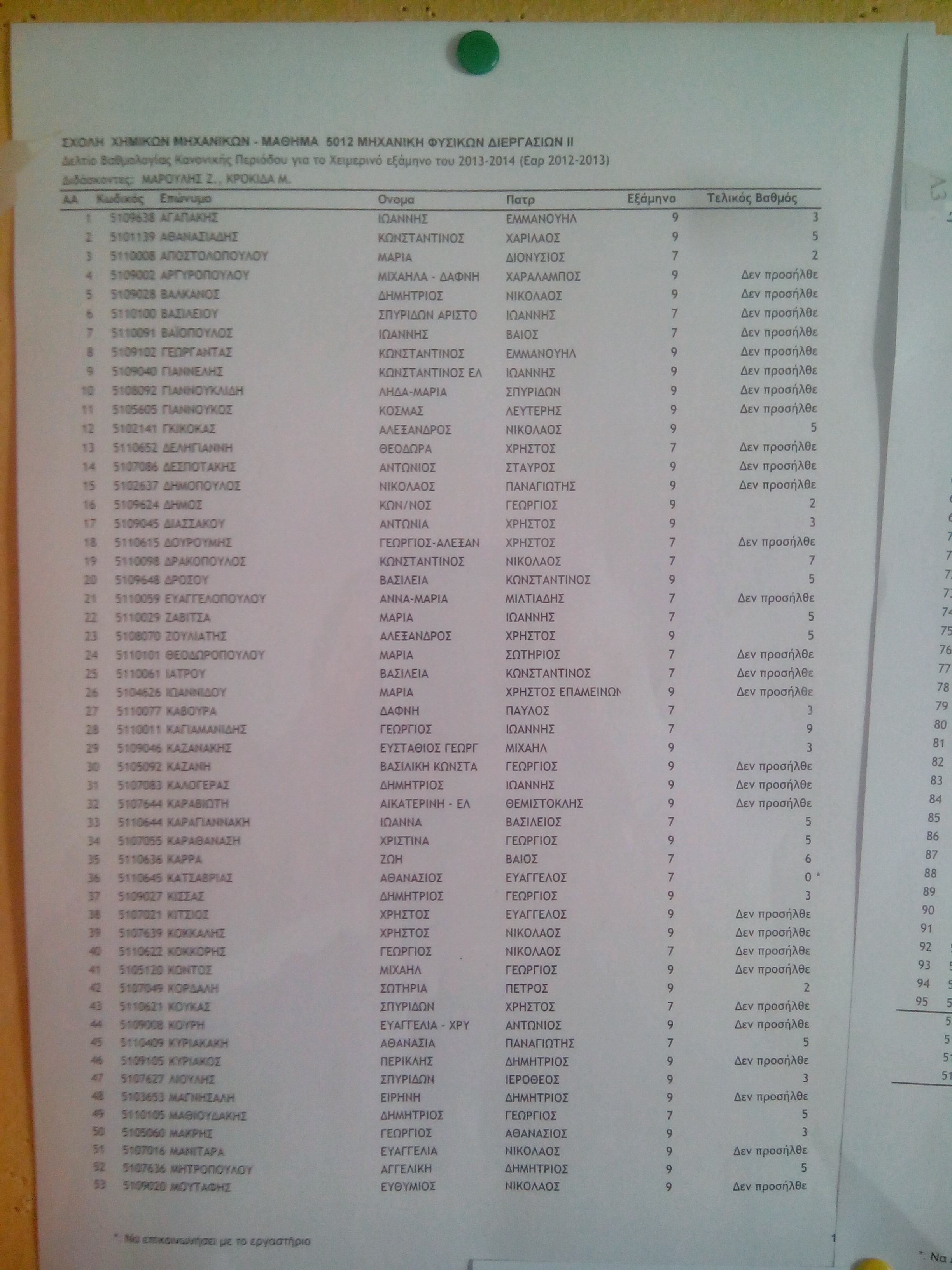Λοιπόν, κι, όμως, έχουν βγει τα αποτελέσματα της τεχνικής μηχανικής.. Βέβαια, λόγω της γνωστής σχέσης των διδασκόντων με την τεχνολογία καθώς της αδυναμίας λειτουργίας του ιδρύματος έχει αναλάβει μία κοπέλα στο γκρουπ της σχολής στο fb να κάνει αναμετάδωση των αποτελεσμάτων....