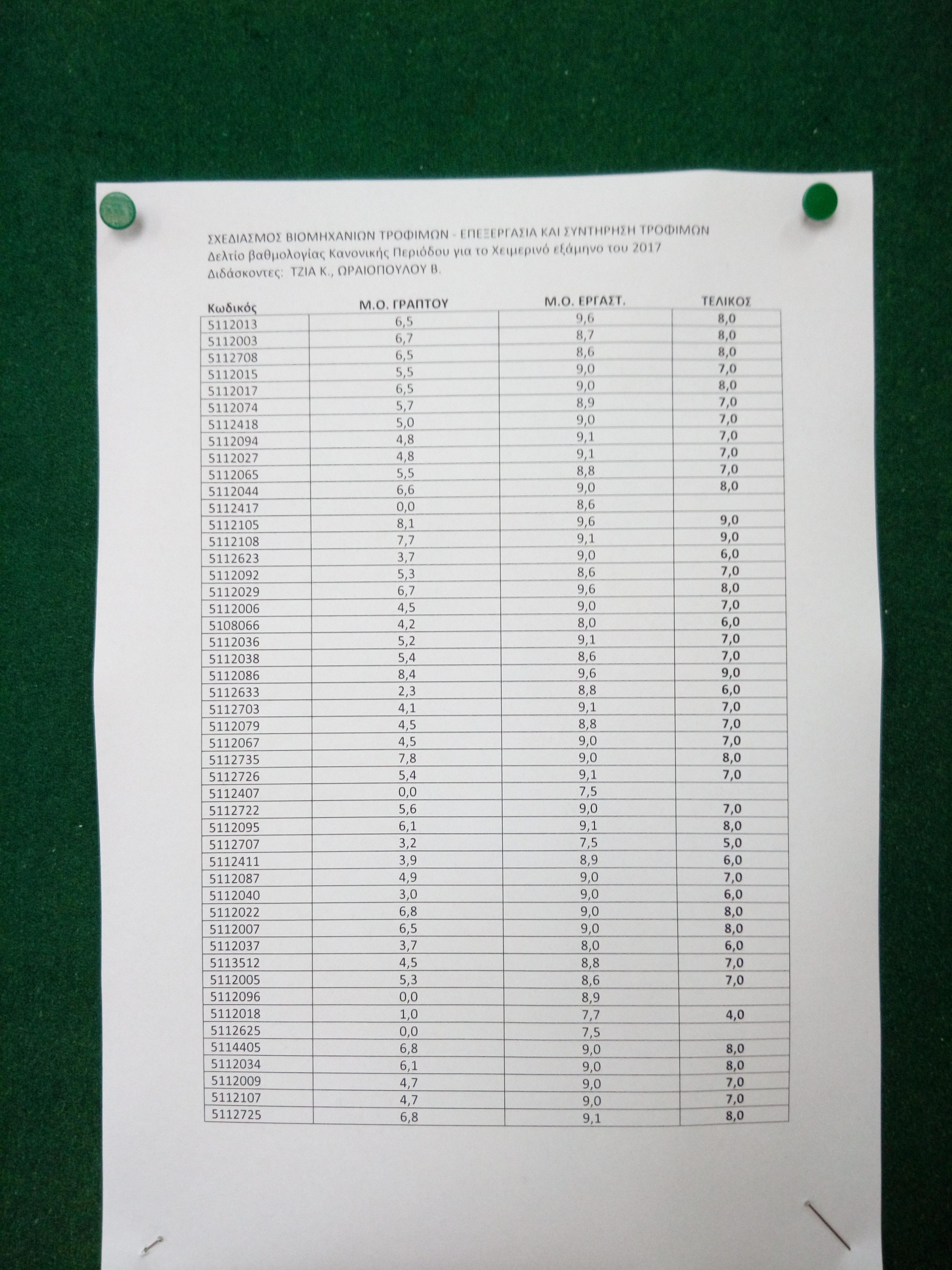 [9o] Σχεδιασμός Βιομηχανιών Τροφίμων - Επεξεργασία και συντήρηση Τροφίμων (Κατ. Τρόφιμα-Βιοτεχνολογία) 7 από KiritoShu Στο συνημμένο τα αποτελέσματα του μαθήματος των τροφίμων του 9ου εξαμήνου Αν κάτι πάει στραβά, ίσιωσέ το. Αν δεν μπορείς, αγνοησέ το. Άλλωστε η ζωή συνεχίζει. Το αν θα την ακολουθήσεις είναι δικό σου θέμα Συνημμένα ΠαράθεσηΠέμ 09 Φεβ 2017, 11:27 am