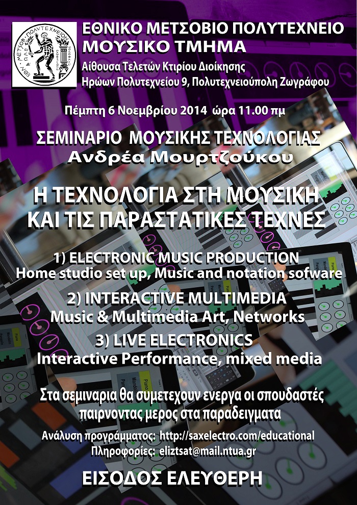 Re: Φεστιβάλ/Εκδηλώσεις 47 από keiner 1)Για όσους δεν το ξέρουν,βρίσκεται σε εξέλιξη το 8ο Διεθνές Φεστιβάλ Επιστημονικών ταινιών της Αθήνας 2)Επίσης: Ενημέρωση για προγράμματα Διδακτορικών Σπουδών στη Γαλλία(24/11/2014) 3)Τέλος,ένα Σεμινάριο Μουσικής Τεχνολογίας στο ΕΜΠ "People don’t listen, they just wait for their turn to talk." — Chuck Palahniuk ΠαράθεσηΚυρ 02 Νοέμ 2014, 11:53 am