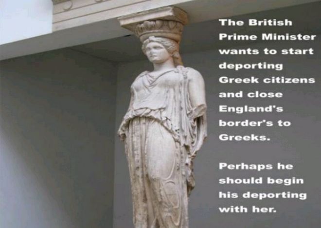 Κλείσιμο των συνόρων για τους Έλληνες σχεδιάζει η Βρετανία 1 από fotinit17 Σχέδια για τον περιορισμό του αριθμού των Ελλήνων που θα θελήσουν να μεταναστεύσουν στη Βρετανία σε περίπτωση που η χώρα βγει από την ευρωζώνη καταρτίζει το αρμόδιο υπουργείο Εσωτερικών της χώρας, σύμφωνα με την υπουργό Τερέζα Μέι. Σε συνέντευξή της στην Ντέιλι Τέλεγκραφ η κα. Μέι αναφέρει πως σε περίπτωση διάσπασης της ευρωζώνης είναι πιθανή αθρόα εισροή μεταναστών στη Βρετανία από την Ελλάδα αλλά και από τις άλλες χώρες στις οποίες εκτιμάται ότι θα μεταδοθεί η ακόμα μεγαλύτερη οικονομική κρίση, όπως Ισπανία, Ιρλανδία και Πορτογαλία. Παρά την ελευθερία μετακίνησης πολιτών εντός της ΕΕ, η βρετανική κυβέρνηση έχει θέσει σε εφαρμογή προσωρινά περιοριστικά μέτρα ως προς την είσοδο στη χώρα για Βουλγάρους και Ρουμάνους πολίτες. Το Λονδίνο, όπως και άλλες ευρωπαϊκές πρωτεύουσες έχει αξιοποιήσει την πρόβλεψη του ευρωπαϊκού δικαίου που επιτρέπει προσωρινούς περιορισμούς στις μετακινήσεις «υπό εξαιρετικές συνθήκες». Η Τερέζα Μέι δηλώνει ότι το υπουργείο Εσωτερικών ήδη ελέγχει τις τάσεις στην μετανάστευση προς τη Βρετανία από ευρωπαϊκές χώρες με οικονομικά προβλήματα. Παρά το γεγονός ότι μέχρι στιγμής δεν έχει παρατηρηθεί ιδιαίτερη αύξηση στις αφίξεις από την Ελλάδα, προσθέτει ότι είναι δύσκολο να προβλέψει κανείς πώς θα εξελιχθούν τα πράγματα τις επόμενες εβδομάδες και επομένως είναι σωστό να εκπονούνται σχέδια έκτακτης ανάγκης. Σύμφωνα με την Τέλεγκραφ, οι έλεγχοι είναι πιθανό να περιλαμβάνουν περιορισμούς σε όσους αναζητούν εργασία στη Βρετανία, πιθανώς με την υποχρέωση να καταθέτουν αίτηση για έκδοση βίζας. Εν τω μεταξύ, στοιχεία του υπουργείου Εσωτερικών καταγράφουν αύξηση 30% στον αριθμό των Ελλήνων που έλαβαν τη βρετανική υπηκοότητα το 2011 σε σχέση με το 2010. Συγκεκριμένα 325 Έλληνες ακολούθησαν τη διαδικασία έκδοσης βρετανικού διαβατηρίου το 2011 έναντι 250 το 2010. Η αύξηση δεν είναι πολύ μεγάλη, αλλά έρχεται σε αντίθεση με την πτώση του 13% στις αιτήσεις για βρετανική υπηκοότητα από την υπόλοιπη Ευρώπη. Πηγή "I went numb when I learned to see..." ΠαράθεσηΣάβ 26 Μάιος 2012, 2:24 pm