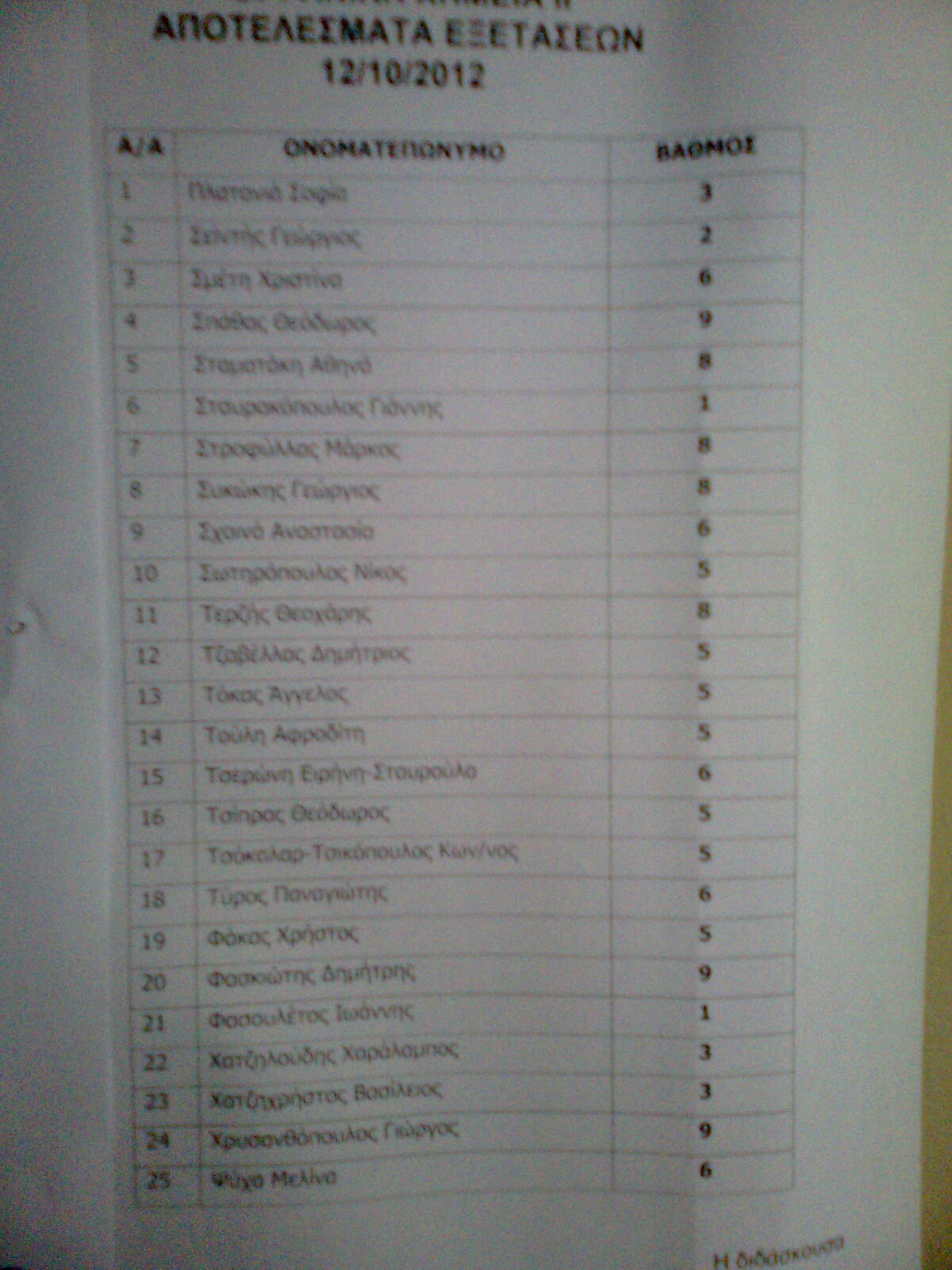 Ο κ. Τσολομύτης μου είπε σήμερα ότι τα αποτελέσματα τα έχει στείλει στην κ. Κατσανεβάκη.