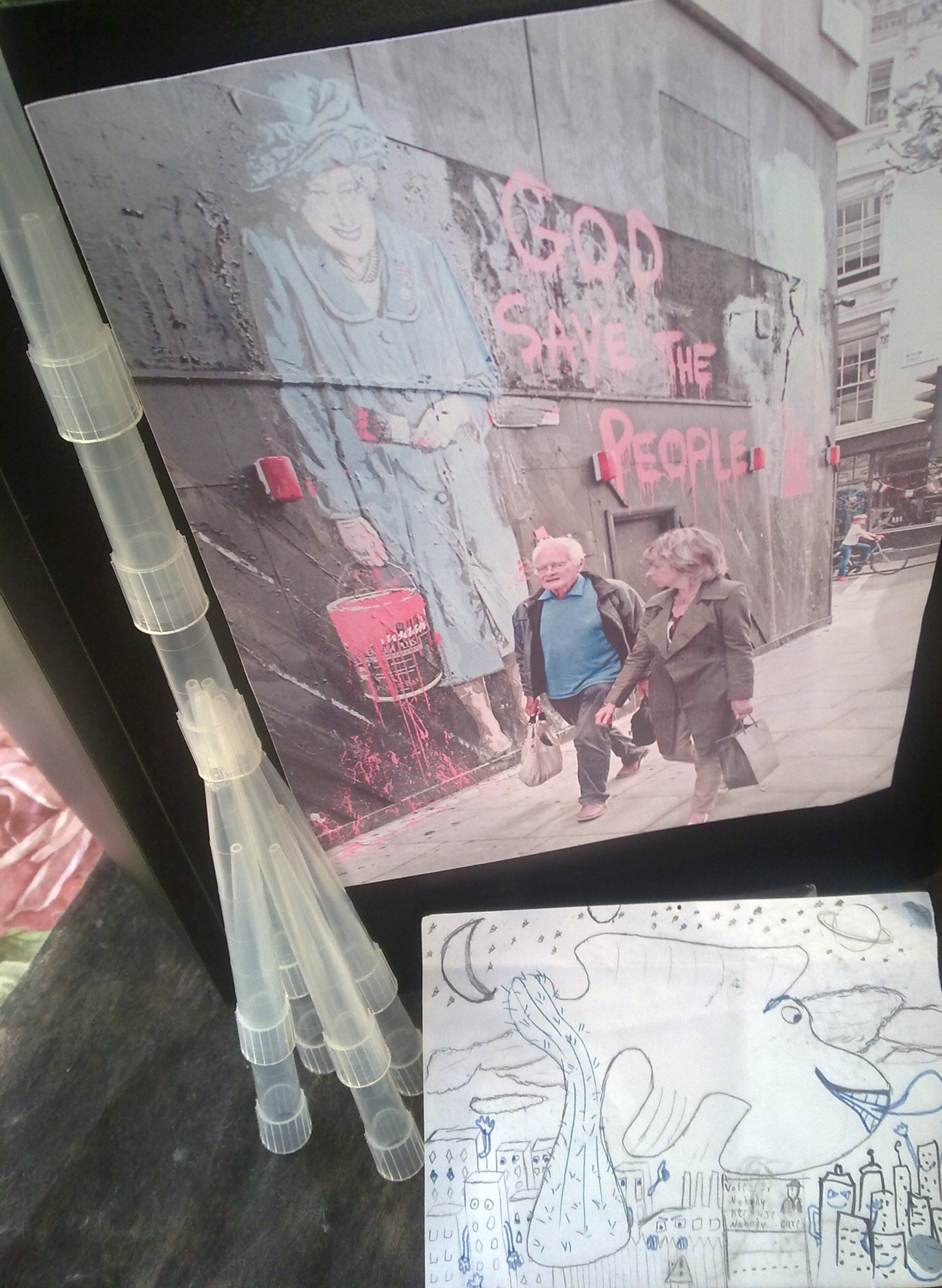 Η κατασκευή στα αριστερά είναι υποτίθεται ο πύργος του Eiffel(φτιαγμένος από ρύγχη πιπέτας...)